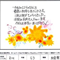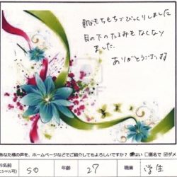 【 デリケートフェイシャル(フェイス~ネック)】 気持ちが使用前使用後で別人に成りました。 スッキリ。ありがとう! N 【 ファムからのメッセージ 】 N様 この度はファムをご利用いた…