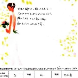 【 スペシャルフェイシャル(フェイス~デコルテ)】 始まって間もなく眠ってしまって・・・ 今日はリフトアップしていただいて 顔がシャキっとしたような気がします。 痛くもなくてよかったです。 S 40歳 会社員 …