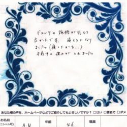 【 バックスペシャル 】 とても親切、丁寧な対応で施術も気持ちよく 終わったあとに身体がスッキリしているのが分かりました。 ありがとうございました。 Y.T様 24歳 会社員 【 ファムからのメッセージ 】 …