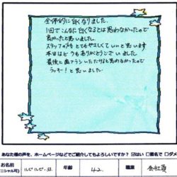 【リンパトリートメント】 (フェイス&ボディ) 痛くないリンパマッサージで 眠ってしまいそうでした。 とても気持ち良かったです。 Y・A 44歳 主婦 【ファムからのメッセージ】 Y・A 様、この度は ファムをご利用いただきまし…