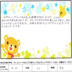 【毛穴ベーシックコース】 体験してみて、肌がモチモチになった気がします。 頭皮のマッサージとっても気持ち良かったです。 H 様 26 歳 主婦 【ファムからのメッセージ…