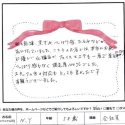 【デリケートフェイシャル】 (フェイス~ネック) 丁寧な接客に安心感がありました。 一つ一つの手順を細かく説明しながらの 施術はうれしかったです。 私の肌に対応していただき ありがとうございました。 M 50歳 教員 【ファムからの…