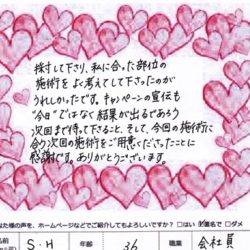 最先端の脂肪冷却痩身 【 ICEセルクラッシャー体験 】 丁寧でとても親切な対応をして頂きました。 身体の内側からの改善が必要だなと 思いました。 Y 様 35歳 会社員 【ファムからのメッセージ】 Y 様 この度は初めてファムをご利用いただき…
