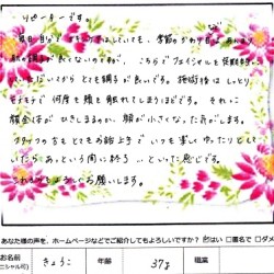 【リンパトリートメント】 疲れていたのもあり とてもスッキリしました。 また、頑張れます。 I 61歳 主婦 【ファムからのメッセージ】 I 様、いつもファムをご利用下さいまし…